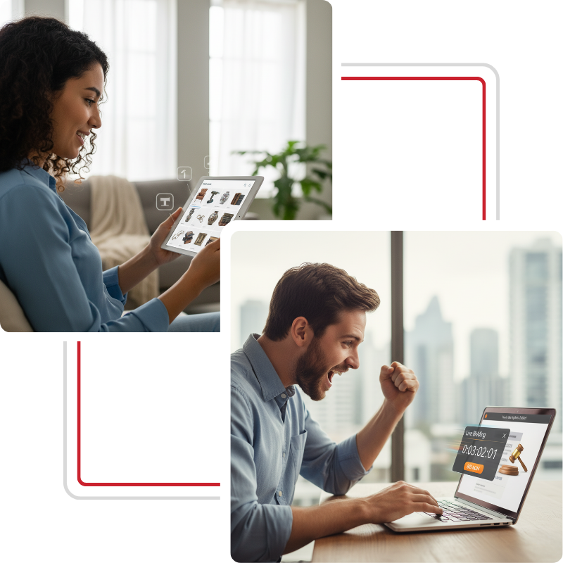 Live bidding brings the fast-paced thrill of a real auction directly to your screen. It's an engaging, real-time experience that adds a layer of excitement to your shopping. Here's how it works: